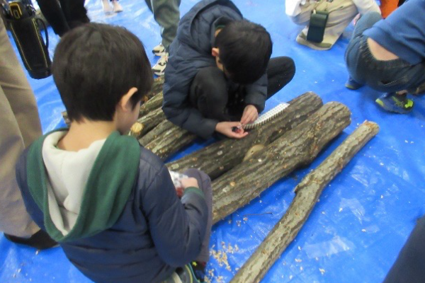 三富地域では300年以上も前から、木を植えて平地林をつくり、落ち葉を集め堆肥とし畑にまいて野菜をつくるとともに、薪・炭などの燃料としても利用してきました。しかし、最近の平地林は燃料としての需要がなくなり、高齢化する一方となっています。平地林の木は、伐って・使って、植えて、育てるという循環利用を図ることで健全に保たれます。そこで、平地林の木を伐ってつくったほだ木に、シイタケの菌を打ち込む植菌体験を通じて、三富地域の農業や平地林について考えてみませんか。